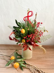 【数量限定】お正月アレンジメント (シンプル竹筒タイプ)